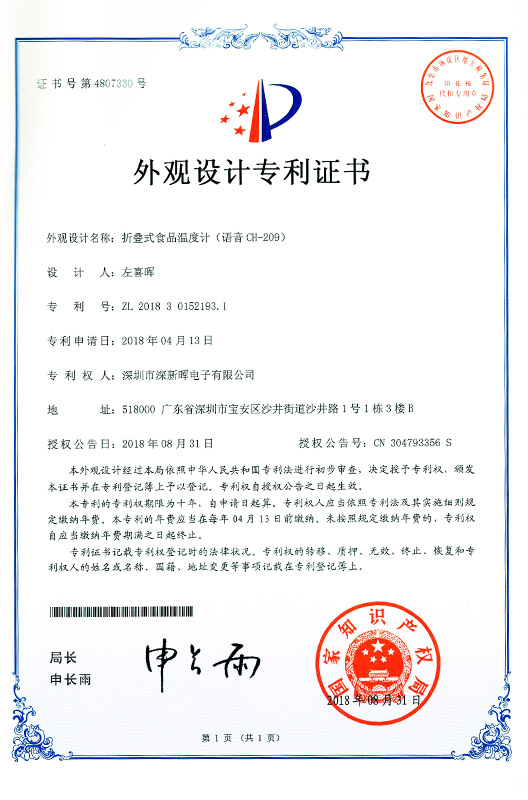 深圳市深新暉電子有限公司一直秉持“創新、高效、和諧、誠信”的企業精神,始終把創新放在首位,近年來取得了飛速的發展。CH-209也成功獲得了美國外觀專利的授權。