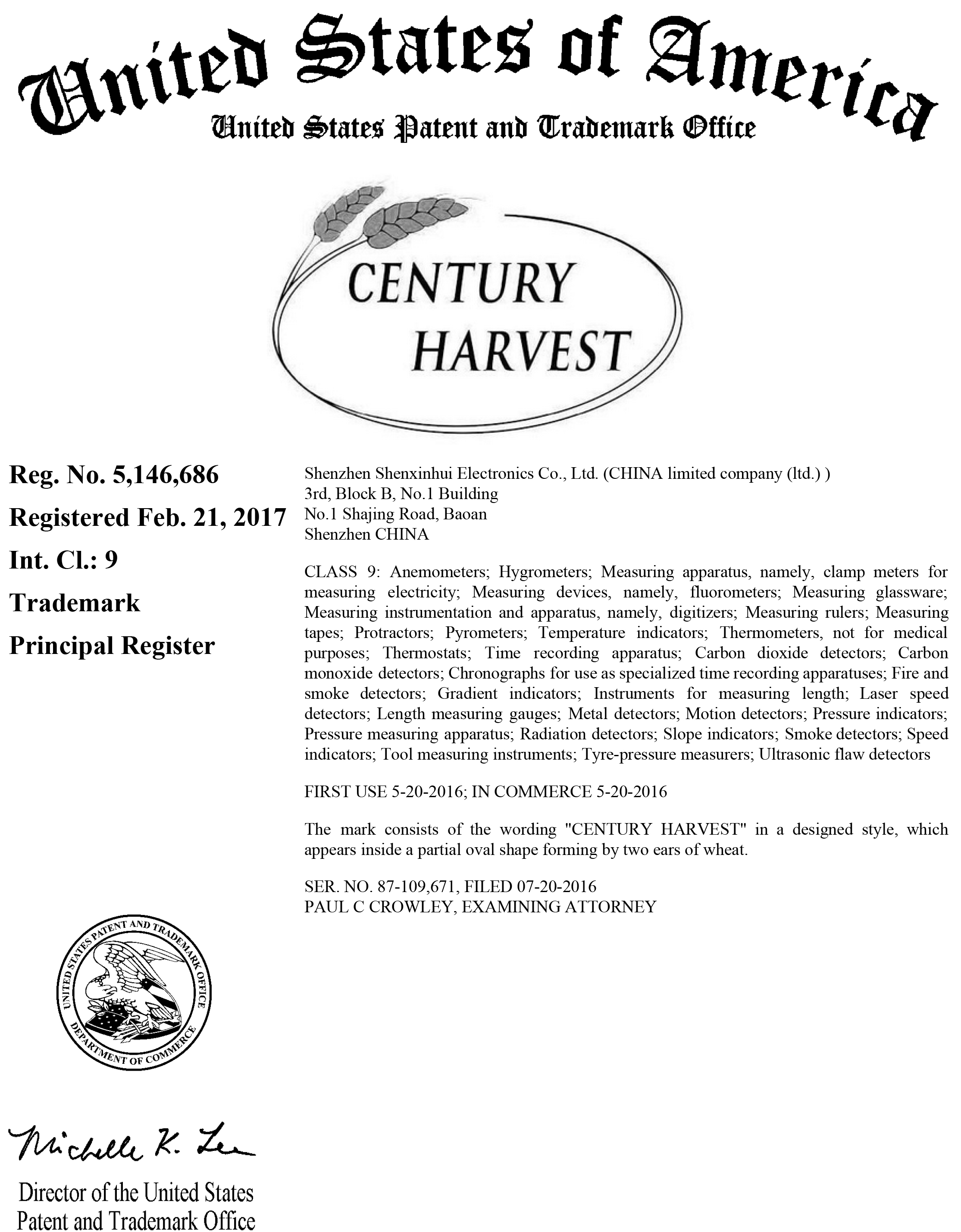 為更好地進行知識產權管理和應用,切實進行知識產權保護工作,公司將品牌“CENTURY HARVEST世紀怡豐”進行了美國商標注冊,并已通過核準,這也標志著公司知識產權管理工作又向...