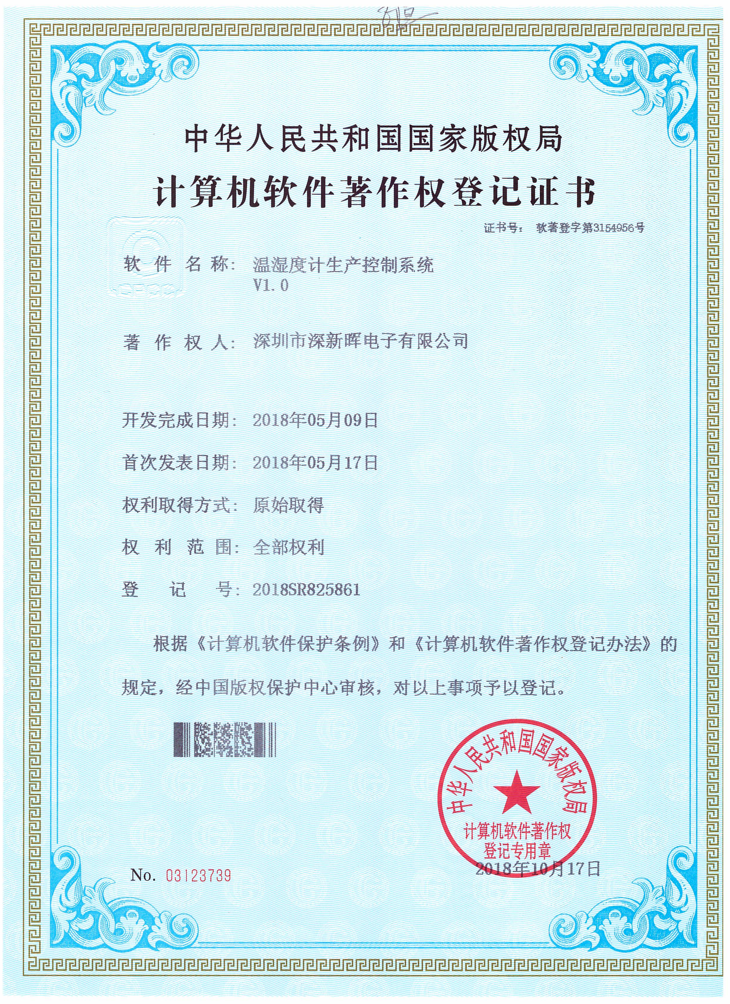 2018年度,深新暉公司最新申報的六項軟件著作權登記申請,目前均已獲得了授權。     食品溫度計檢測控制軟件系統V1.0    登記號:2018SR82...