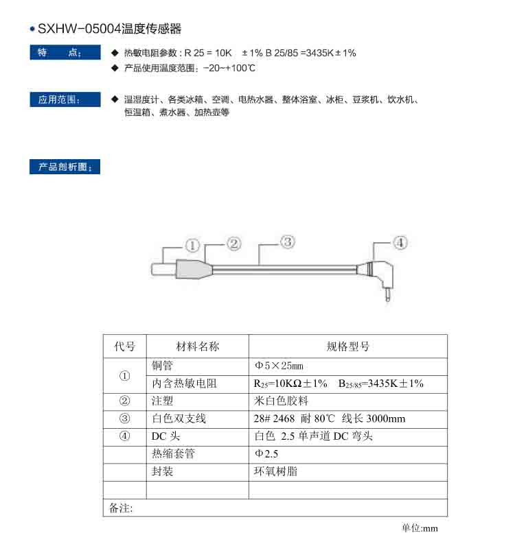 名稱:SXHW-05004溫度傳感器
