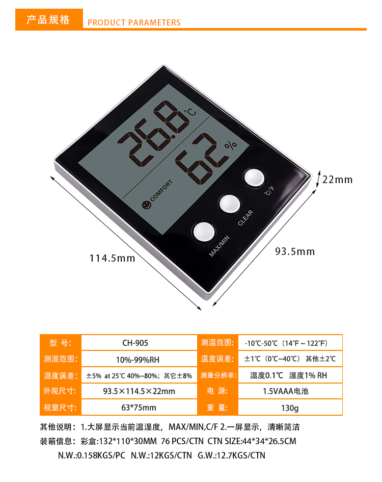 名稱:CH-905電子溫濕度計