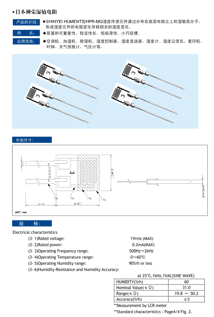 名稱:日本神榮濕敏電阻