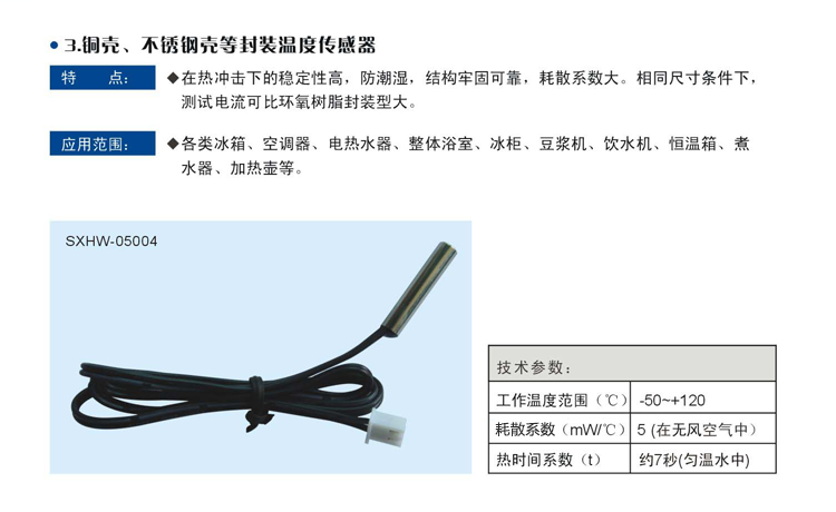 名稱:銅殼、不銹鋼殼封裝溫度傳感器