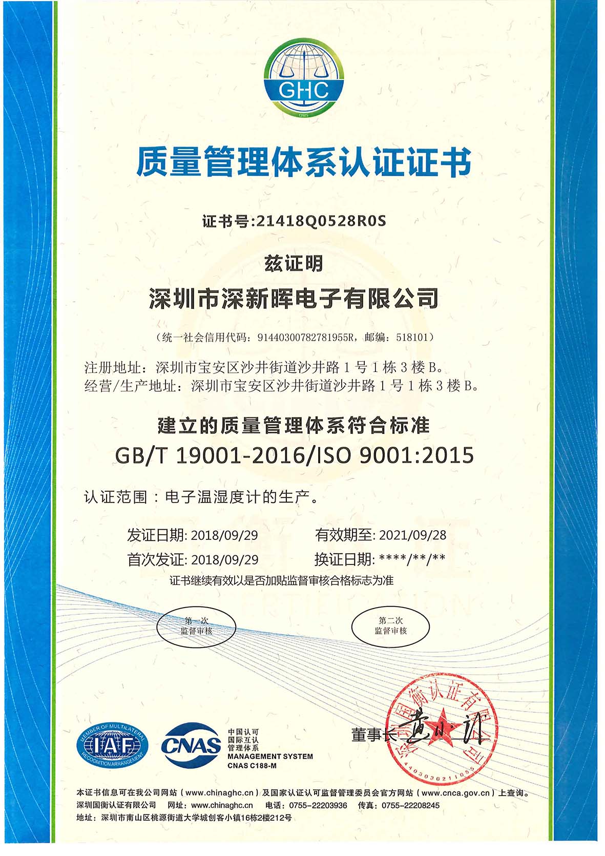 在公司員工的不懈努力下,我司經過國家權威認證機構專家的全面、嚴格、細致的指導和審核,確認我司的技術水平、條件、管理,符合申請的ISO9001:2015質量體系認證要求。于日前獲得審批,并頒發了榮譽證書。認證編號為:21418Q0528R0S。